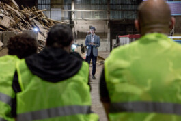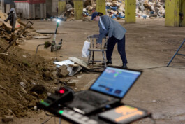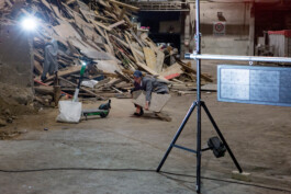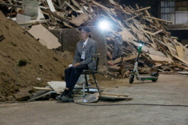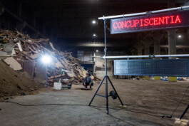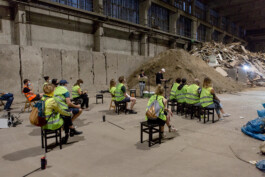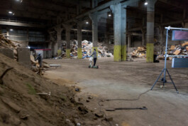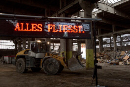 Baggerballett mit Vanitas-Motiven und Close-Ups auf die Falten der Seele: In den Hallen des Baustoffrecyclings am Rande der Stadt werden Fassaden, Büros und Wohnungen zu Brocken und Staub zerschlagen, um neuen Stoff für die Innenstadtträume ewig wachsender Immobilienwerte zu gewinnen. Nachdem Leibniz die Seele als Haus ohne Fenster beschrieb, projizieren wir individuelles Kopfkino aus dem Wimmelbild der Stadt ins Halbdunkel der riesigen Halle. Drei Nüsse für Aschenbrödel überlagern sich mit Bildern der barocken Komponistin und Courtisane. In den Dunkelkammern der libertinären 00r Jahre steigen Erinnerungen an die verbrannten Haare des Vaters auf.